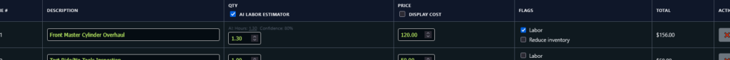 The AI model will consider actual book defined labor rates of that vehicle (or similar), along with condition, and labor times learned from your past invoices to determine the time, the confidence rating is based on what resources were used; 10% is basically a google search, 100% means the exact book rate, condition, and an exact previous billed time was found.