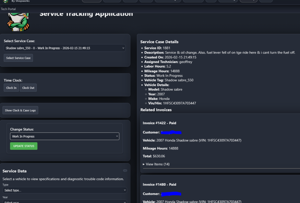 In the portal they can also view/update bulletin board, access quick service data specs, and clock out.