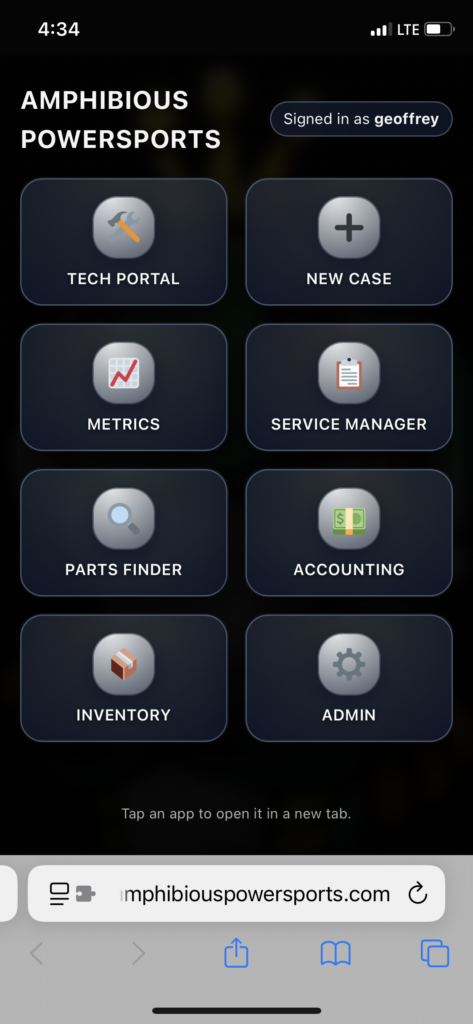 From the desktop optimized site you will see a menu bar with all modules available for your user, however, to cram all of that into a mobile optimized page would be too messy, so in every client platform a “Mobile Launcher” is available at service.yourdomainname.com/mobile (add ‘/mobile’ where you normally login at).